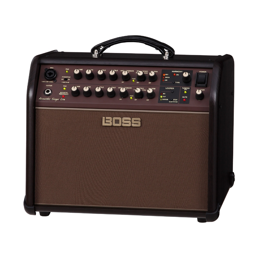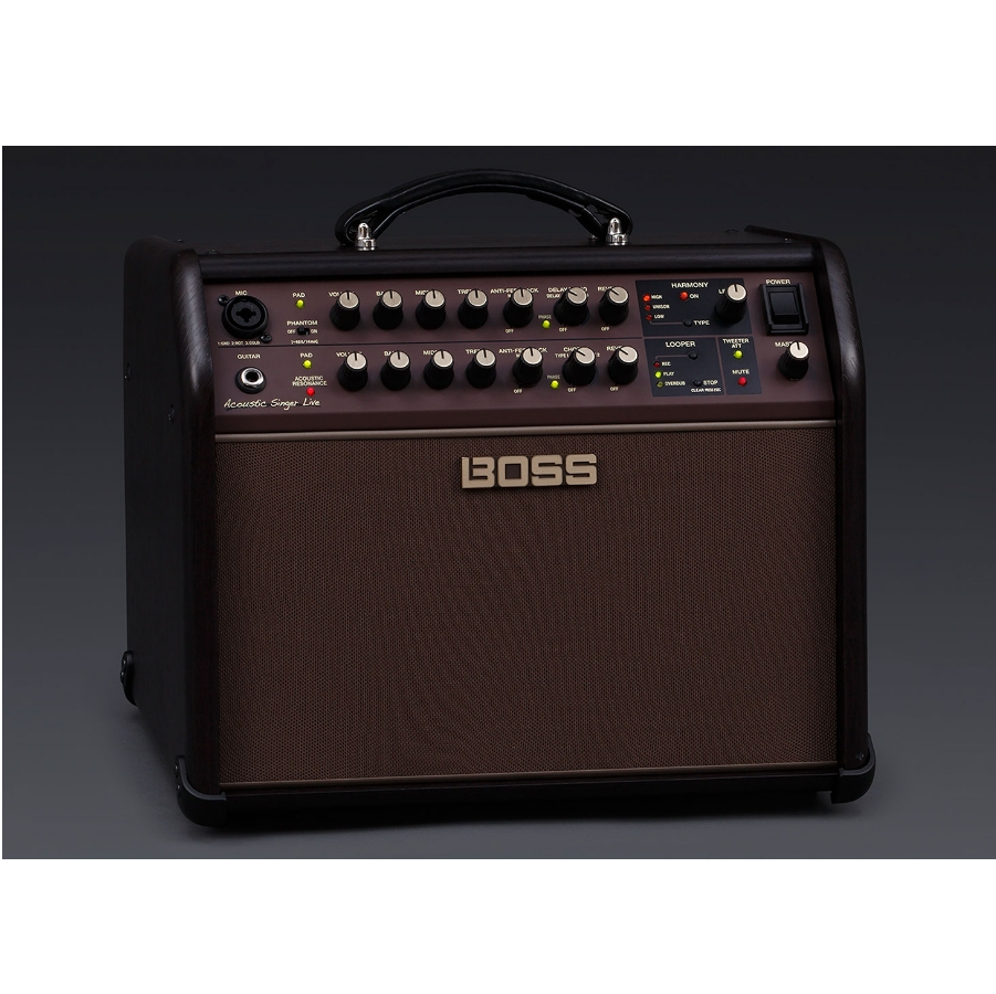 De Boss Acoustic Singer Live tilt de akoestische podiumversterker naar een nieuw niveau wat klankkwaliteit en creatieve veelzijdigheid betreft. Deze compacte krachtpatser beschikt over de nieuwste geïntegreerde technologische ontwikkelingen van BOSS, en produceert een rijke, levendige sound met een ongeëvenaarde punch en helderheid. Onafhankelijke kanalen voor akoestische gitaar en vocals zijn voorzien; en elk kanaal is uitgerust met discrete analoge ingangscircuits en een driebands EQ voor een sound van studiokwaliteit. En met bijkomende features zoals Acoustic Resonance, looping, automatische stemharmonieën en nog veel meer, voorziet de Acoustic Singer Live alles wat muzikanten nodig hebben om geïnspireerde en krachtige live performances te kunnen leveren.