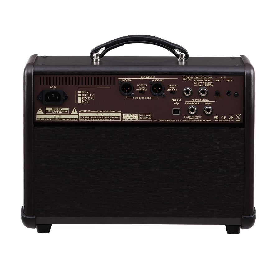 - Microfoonkanaal met fantoomvoeding en ¼-inch/XLR combo input om een zang-/gitaarmicrofoon of een tweede instrument of klankbron aan te sluiten