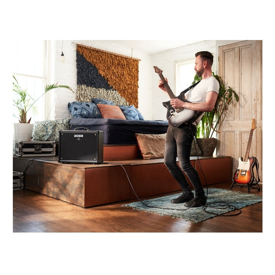 De Katana Gen 3 heeft vijf gelijktijdige effectcategorieën, volgeladen met essentiële selecties uit de historische BOSS-bibliotheek. De Booster-, Mod-, FX-, Delay- en Reverb-secties bieden een verbeterde geluidskwaliteit, snel te gebruiken parameterregelaars en hebben elk drie variaties voor totale toegang tot 15 unieke effecten. BOSS Tone Studio opent extra mogelijkheden, waardoor je de ingebouwde effecten kunt aanpassen uit 60 verschillende types en diepgaande opties kunt tweaken die niet beschikbaar zijn via het paneel van de versterker. En als de optionele Bluetooth Audio MIDI Dual Adapter is geïnstalleerd, kun je tijdens het optreden draadloos sounds bewerken met de BTS editor app op je smartphone.