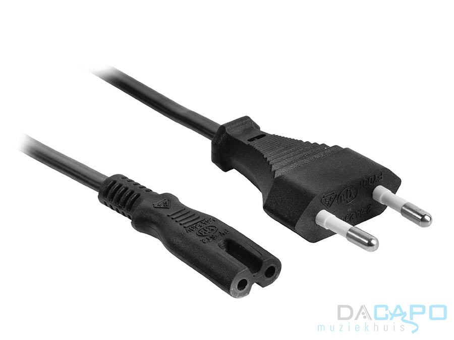 Dit is een 8-vormige (zgn. figure 8) aansluiting of IEC C7 met een europese stekker. Nog steeds veel gebruikt door apparaten en praktisch alle acculaders. Ideaal als er een een kabel zoek raakt of kapot gaast. De lengte van 2 meter is een prettige lengte als u niet veel afstand nodig heeft en u niet teveel kabel op de vloer wilt hebben liggen.