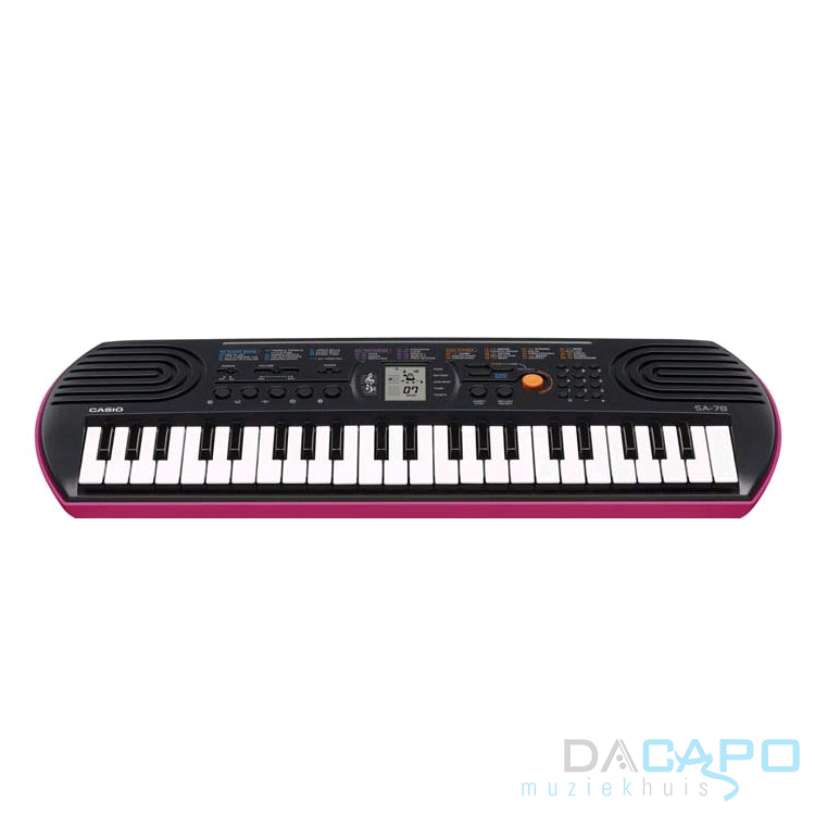 De Casio SA-78 is een leuk beginners keyboard met 44 toetsen en een roze onderkant. Het keyboard heeft 100 verschillende geluiden en instrumenten.