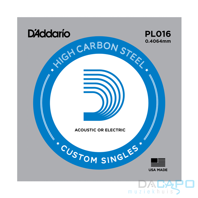 De D'ADDARIO PL016 is een losse 016 snaar geschikt voor elektrische gitaar en western gitaar. U kunt deze snaar gebruiken om een gebroken snaar te vervangen.