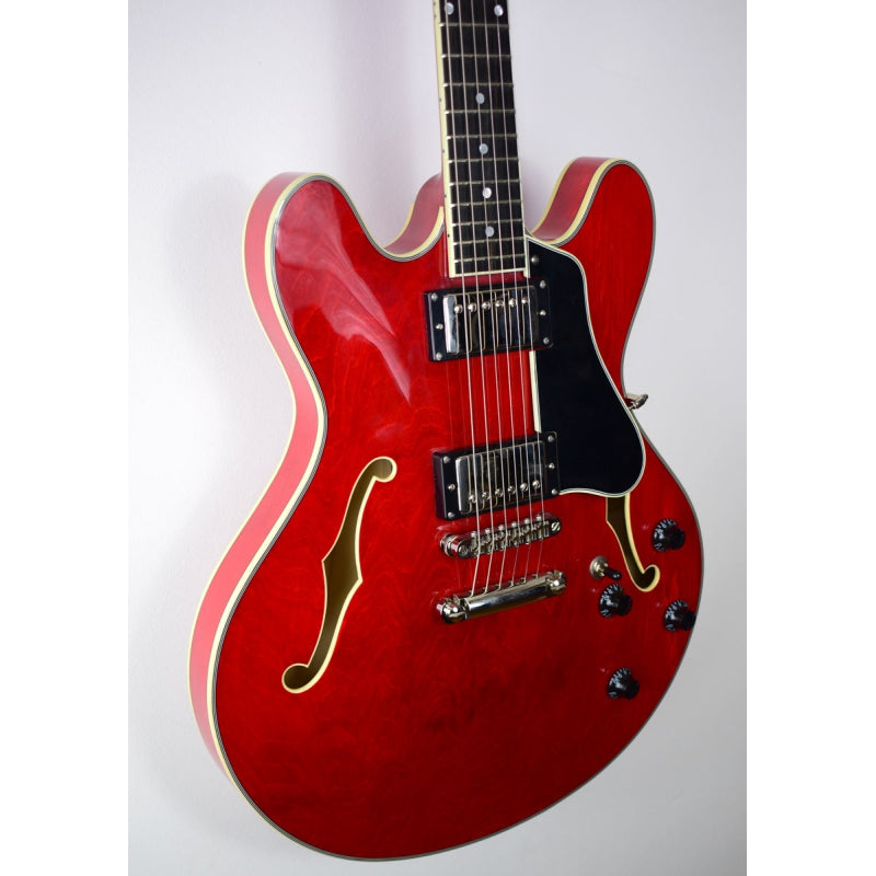 Wat deze gitaar echt bijzonder maakt, zijn de specificaties die perfect zijn afgestemd op jouw muzikale behoeften. Met zijn semi-holle body en hoogwaardige houtsoorten zorgt de Eastman T386RD voor een warme, rijke klank. Of je nu rock, blues of jazz speelt, deze gitaar past zich aan jouw speelstijl aan.