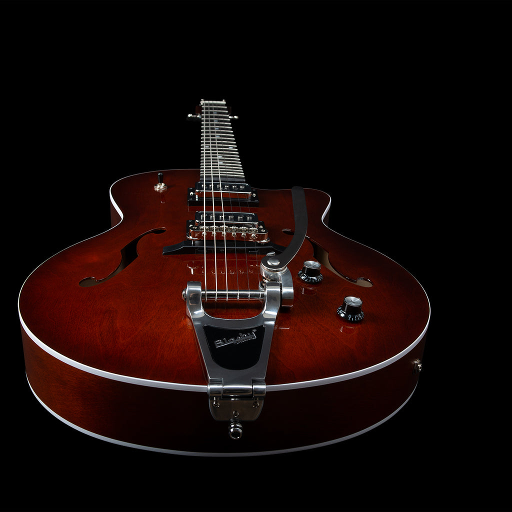 Wat deze gitaar echt bijzonder maakt, zijn de T-Armond pickups. Ze geven je een warm, vol geluid dat perfect past bij verschillende muziekstijlen, van jazz tot rock. De hollow-body constructie zorgt voor een rijke klank en een resonantie die je niet snel zult vergeten. Of je nu op het podium staat of thuis jamt, deze gitaar levert altijd.