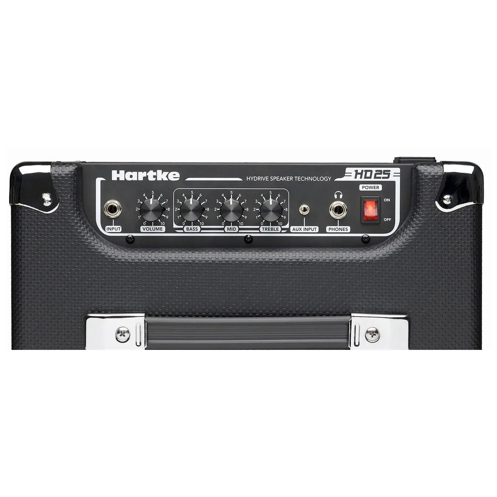 De Hartke HD15 is het kleinste model uit de Hartke HD-serie. Ondanks zijn kleine formaat levert de bascombo een groots geluid. Dit is te danken aan de revolutionaire HyDrive luidspreker, die een volle, rijke en diepe basklank produceert. Deze eigenschappen maakt de HD15 ideaal voor gebruik in de woon- of slaapkamer, tijdens jamsessies, repetitieruimtes en kleine podia.De 15 Watt bascombo is uitgerust met een 6.5 inch HyDrive luidspreker. De basspeaker heeft een conus die vervaardigd is uit papier en aluminium. Deze combinatie zorgt voor een vol en warm geluid met een flinke punch. Zodoende produceert de Hartke HD15 een flinke toon die ideaal is voor bassisten in uiteenlopende genres en stijlen.De HD15 combo is zeer gebruiksvriendelijk en geschikt voor spelers van alle niveaus. Aan de bovenzijde bevindt zich de bediening. Het geluid is zeer gedetailleerd af te stellen middels volume- en een 3-bands toonregeling (Bass, Mid en Treble). Daarnaast heeft de bascombo een 3.5 mm stereo mini-jack AUX-ingang om mee te spelen met muziek van bijvoorbeeld een mp3-speler. En voor oefenen tijdens de laatste uurtjes beschikt de Hartke HD15 over een 6.5 mm hoofdtelefoonaansluiting.