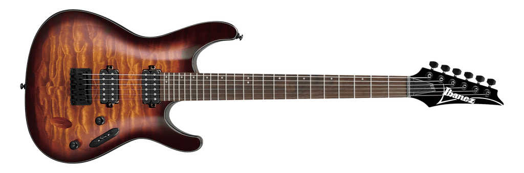 S621QM The cutting edge of Ibanez design, the S series continues to be a marvel of form and function. Its signature body shape - sculpted, lightweight, and mahogany - is stronger and more musically responsive than guitars weighing twice as much. The S series is still a rock 'n' roll version of a quick, graceful, and potentially lethal weapon. ****Product Features**** - Wizard III Maple neck Ibanez's thin, flat and fast Wizard neck is strong and sturdy and offers unlimited playability and features a two-octave 24-fret fretboard for a wide tonal range. - Rosewood fretboard Rosewood fretboard provides a well-balanced solid tone with a focused mid range. - Jumbo frets Jumbo frets contribute to smooth playability, especially for single-note playing. - Quilted Maple top / Meranti body The Quilted Maple top sonically enriches the response for picking. The Meranti body provides a scooped mid-ranged sweet tone. - Quantum H-H pickups The Quantum pickups provide accelerated bass response for exceptionally fast tracking of high-speed staccato riffing with crushing mid range and precise high-end articulation. - F106 bridge The F106 bridge enriches sustain. String height adjustment can be done easily and independently.