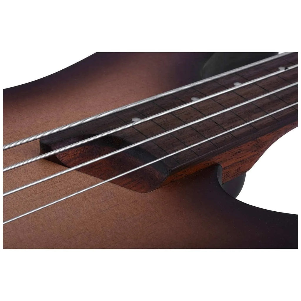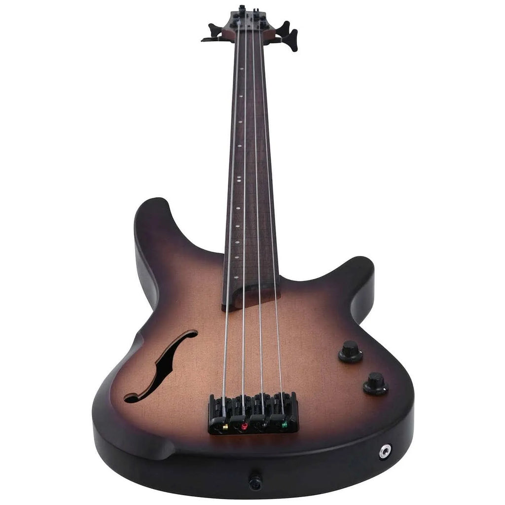 SRH500F Unlike other hollow body basses, the SRH boasts a unique concept: the integration of the authentic feel expected in a hollow body and the key features that distinguish SRH as a contemporary bass. With its sleek, compact, comfortable, lightweight body, the SRH breaks another boundary to open up your playing. With its maximized hollow space, Spruce top and Okoume back and sides, the 55 mm-thick semi-hollow body delivers a rich acoustic tone. The specially designed forearm contour on the body top offers playing comfort and adds an elegant accent to its appearance. - Bass Workshop - For more than 40 years, Ibanez has pioneered new frontiers in bass development, pushing the boundaries of conventional designs to bass players of all styles, affording new avenues of expression and creativity. This spirit of exploration has led to the creation of some of the most successful and popular production basses of all time. Following this same drive to bring new and relevant ideas to the musical forefront is what serves as the basis for this ongoing project, dubbed the Ibanez Bass Workshop. The impetus behind each one of these unique instruments comes from a desire by the Ibanez bass development team to satisfy the particular needs of many players. These inventions may not be for everyone, but for those who yearn to explore new sonic vistas through the medium of bass: The Ibanez Bass Workshop project may give you just what you're looking for. ****Product Features**** - 5pc Jatoba/Walnut neck The 5pc Jatoba/Walnut neck provides tonal clarity and superior attack. - Panga Panga fretboard Panga Panga features a beautiful wood grain which produces a tight low and mid range, along with a sharp attack on high end. - Spruce top / Okoume body The resonant Spruce top responds to your playing. The Okoume body provides a rich mid-low end. - AeroSilk piezo pickup The custom bridge contains the magic of the AeroSilk Piezo system to provide that sense of ”air” that characterizes upright sound. - Piezo active tone control The Piezo active tone control was designed for the AeroSilk Piezo. - Custom AeroSilk bridge The Custom AeroSilk bridge was created specifically for the optimum performance of the AeroSilk Piezo pickup system. Unique plastic saddles work in concert with the piezo pickups and enhance the acoustic ”Upright” quality of the sound. ****Special Features**** - SRH Semi-hollow body construction With its maximized hollow space, Spruce top and Mahogany back and sides, the 55 mm-thick semi-hollow body delivers a rich acoustic tone. - Forearm contour The specially designed forearm contour on the body top offers playing comfort and adds an elegant accent to its appearance. ****Videos**** https://www.youtube.com/watch?v=5b7bGpG-qvQ&list=PL-7gERT47GRfBcGA1b8kCbOcohiZUQ4DF&index=23