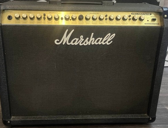 - De VS 265 is een combo-gitaar met transistors + 1 LAMPE ECC83 met 3 kanalen van 2 x 65 watt, uitgerust met 2 grote parleurs van 12 pouces Marshall GOLD Back SPK 100 - 8 ohm, met een refrein van een galm + een soort lijnstereo.