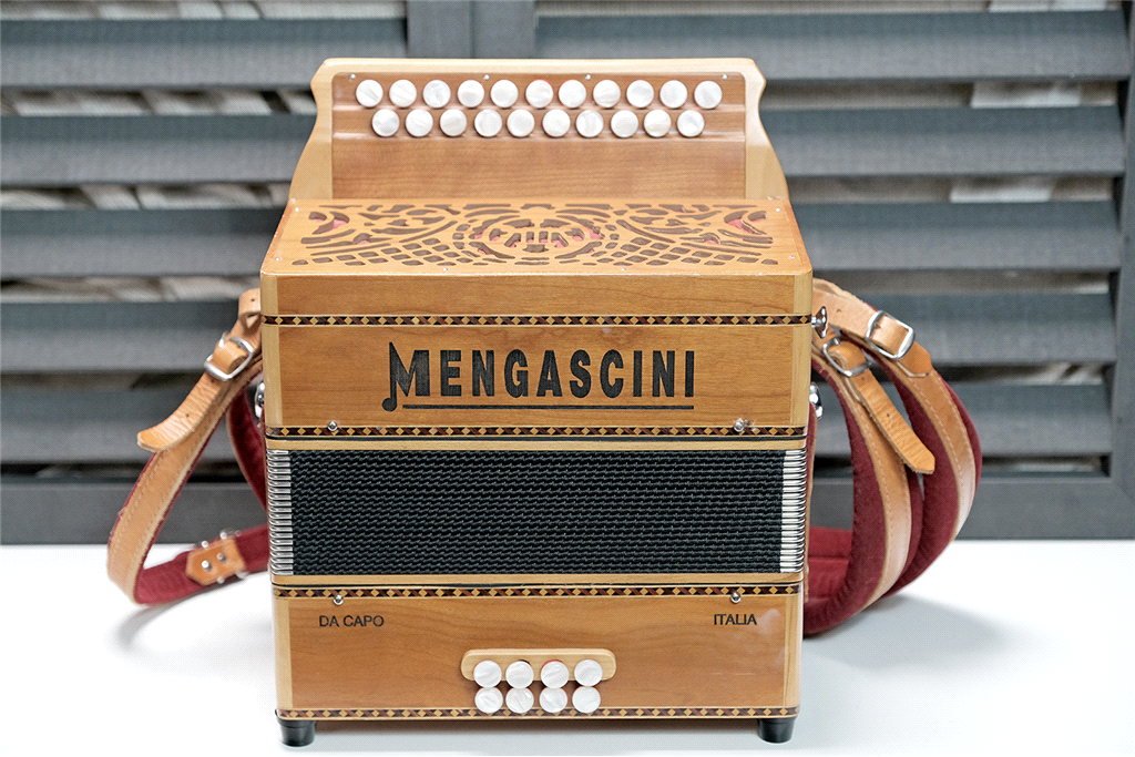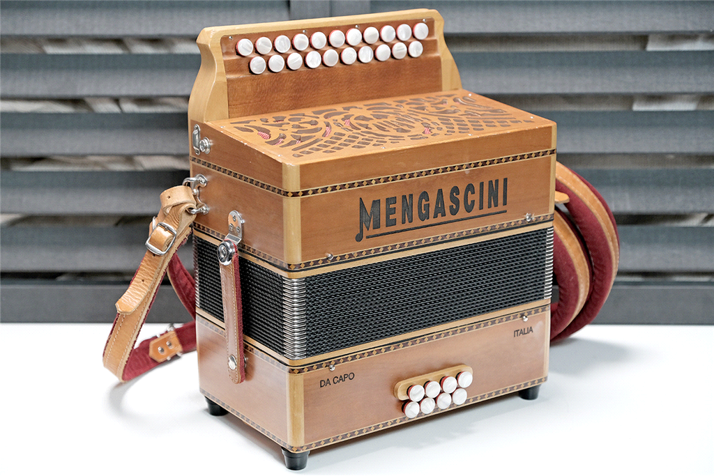 Ben je op zoek naar een tweedehands accordeon die zowel stijlvol als functioneel is? Dan is de Mengascini D 213 precies wat je nodig hebt! Met zijn 21 knoppen en 2 rijen biedt deze accordeon je een geweldige speelervaring. Het is een ideaal instrument voor zowel de beginnende als de gevorderde muzikant. Deze accordeon is handgemaakt in Castelfidardo, Italië, wat voor een authentieke klank zorgt.