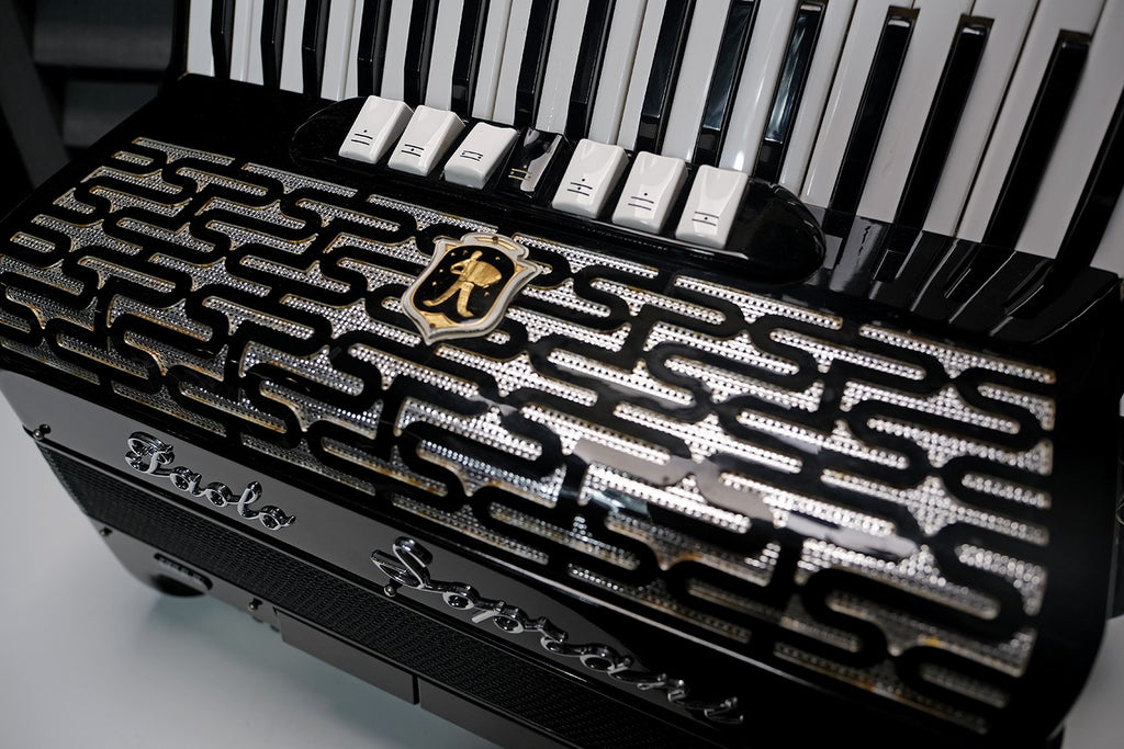 Een waar kunstwerk uit de rijke Italiaanse accordeontraditie! Deze Paolo Soprani 80 Bas Compact Accordeon werd vervaardigd door de wereldberoemde Paolo Soprani-fabriek, de oudste accordeonbouwer ter wereld, gevestigd in het pittoreske Castelfidardo, Italië. Dit model is perfect voor de kleinere speler of als tweede accordeon voor onderweg. Het lichte gewicht en het compacte formaat maken het een ideaal instrument om staand te bespelen, te reizen of te oefenen zonder in te boeten op geluid.