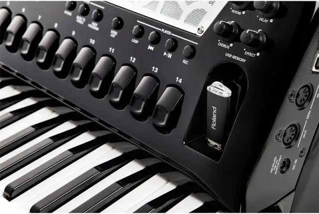 Met de Roland FR-8X BK heeft Roland de ultieme balans gevonden tussen ouderwetse bespeelbaarheid en de nieuwste technologie. Het vlaggenschip van Roland zit boordevol met verbeteringen en functies die ontwikkeld zijn met hulp van 's werelds beste accordeonisten. Hierdoor is de FR-8x nog expressiever geworden en door de Dynamic Bellows Behavior technologie reageert de FR-8x als een echte accordeon. Het klankenpalet en effectenarsenaal zijn nog uitgebreider geworden. Door de ingebouwde looper zijn de mogelijkheden vrijwel eindeloos.