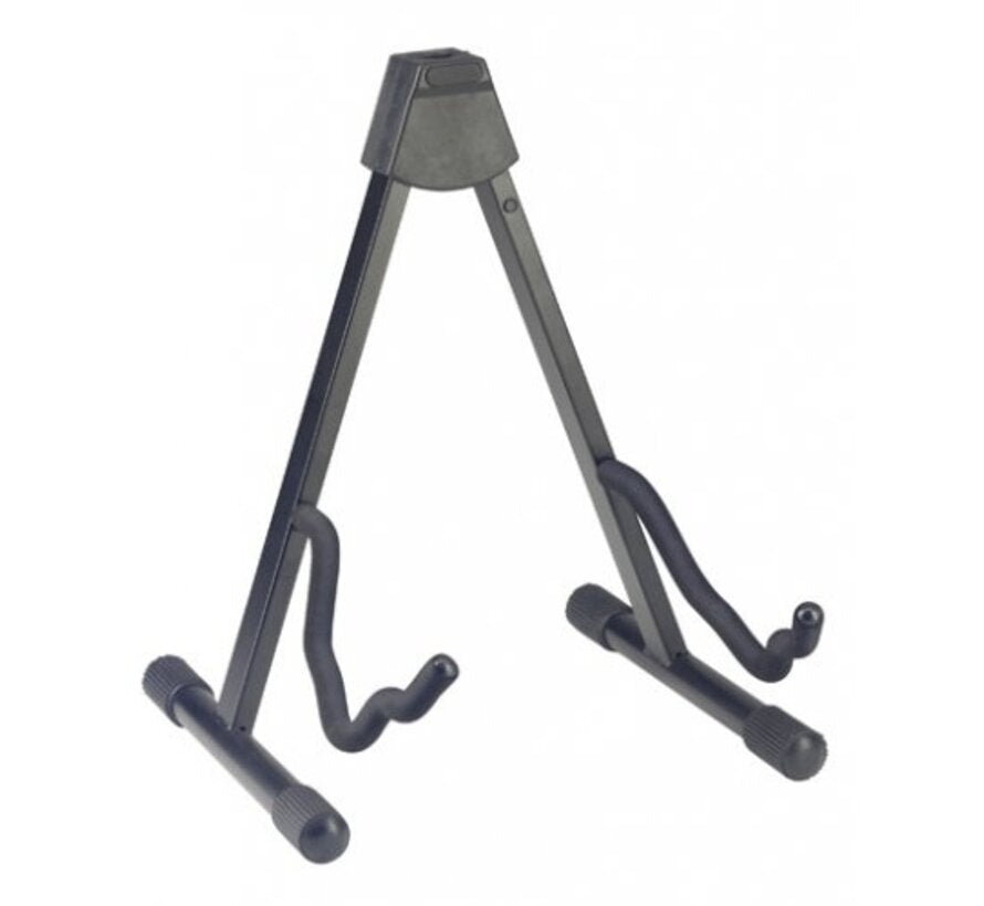 - Materiaal: Staal (frame); EVA (Ethyleenvinylacetaat (kunststof): draagarmen en achterbladsteun) - Coating: Krasbestendige poedercoating - Extra's: Veiligheidsmechanisme met pal en veer blokkeert de standaard in opengevouwen toestand - Hoogte: 41,3 cm - Breedte: 20 - 34 cm, instelbaar (3 posities tussen de draagarmen: 15, 20 en 26 cm) - Buisafmetingen: 25 mm (ronde buis); 19 x 30 mm (rechthoekige buis) - Gewicht: 1,5 kg - Juridische zaken: Voldoet aan REACH-regelgeving en de Californische Proposition 65 - Kleur: Zwart