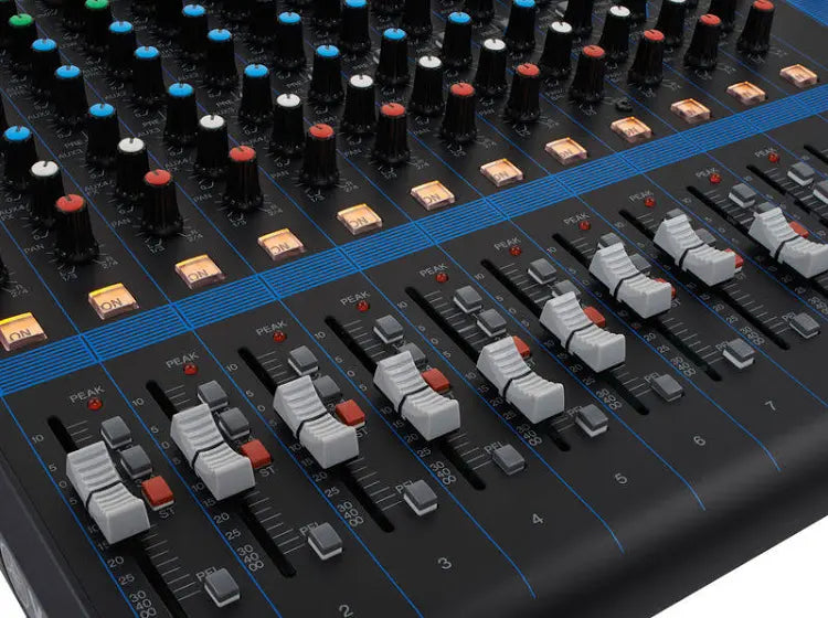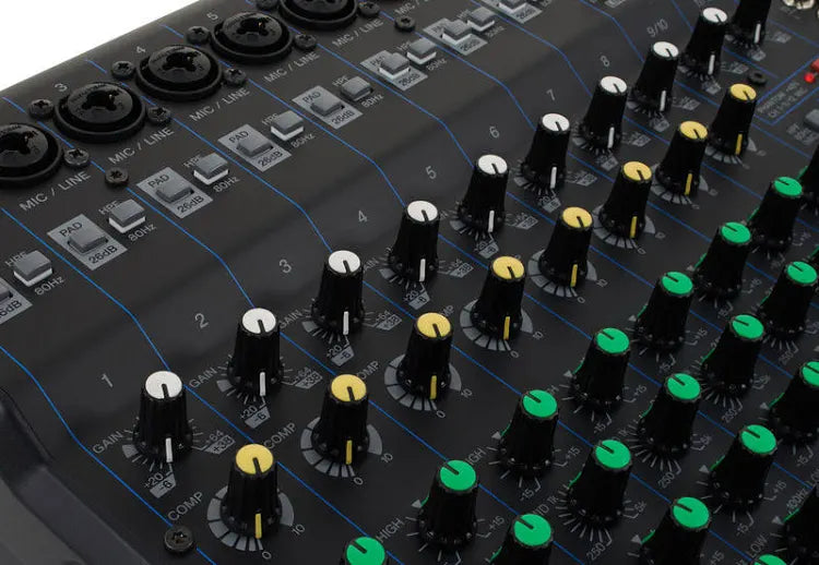 - Kanaal 1-8 voorzien van gain, volume, compressor, toonregeling, HP-filter, Pad, panning, send aux 1-4